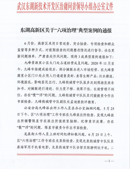 東湖高新區(qū)關于“六項治理 ”典型案例的通報