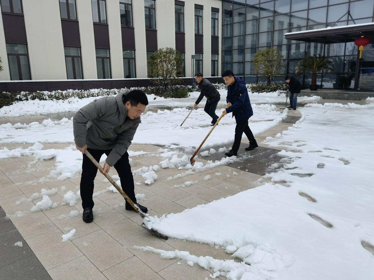 會后,領(lǐng)導(dǎo)班子成員秉承干在實(shí)處、走在前列的精神,帶領(lǐng)各部門工作人員在科學(xué)島園區(qū)開展義務(wù)勞動,清除路面積雪,確保道路交通順暢、員工出行安全。道路寒風(fēng)凜冽,路面積雪厚重,尤其是隨著氣溫驟降,增加了掃雪除冰的難度。但在領(lǐng)導(dǎo)們的帶領(lǐng)下,干部職工們個(gè)個(gè)干勁十足,掃帚、鐵鍬、鐵鏟齊上陣,揮鍬、破冰、鏟雪、清地……經(jīng)過連續(xù)數(shù)小時(shí)的奮戰(zhàn),道路、綠化帶等園區(qū)內(nèi)的堅(jiān)冰積雪被逐漸清掃干凈,確保了道路的暢通和安全,切實(shí)保障科學(xué)島展廳工作區(qū)進(jìn)入接待狀態(tài)。