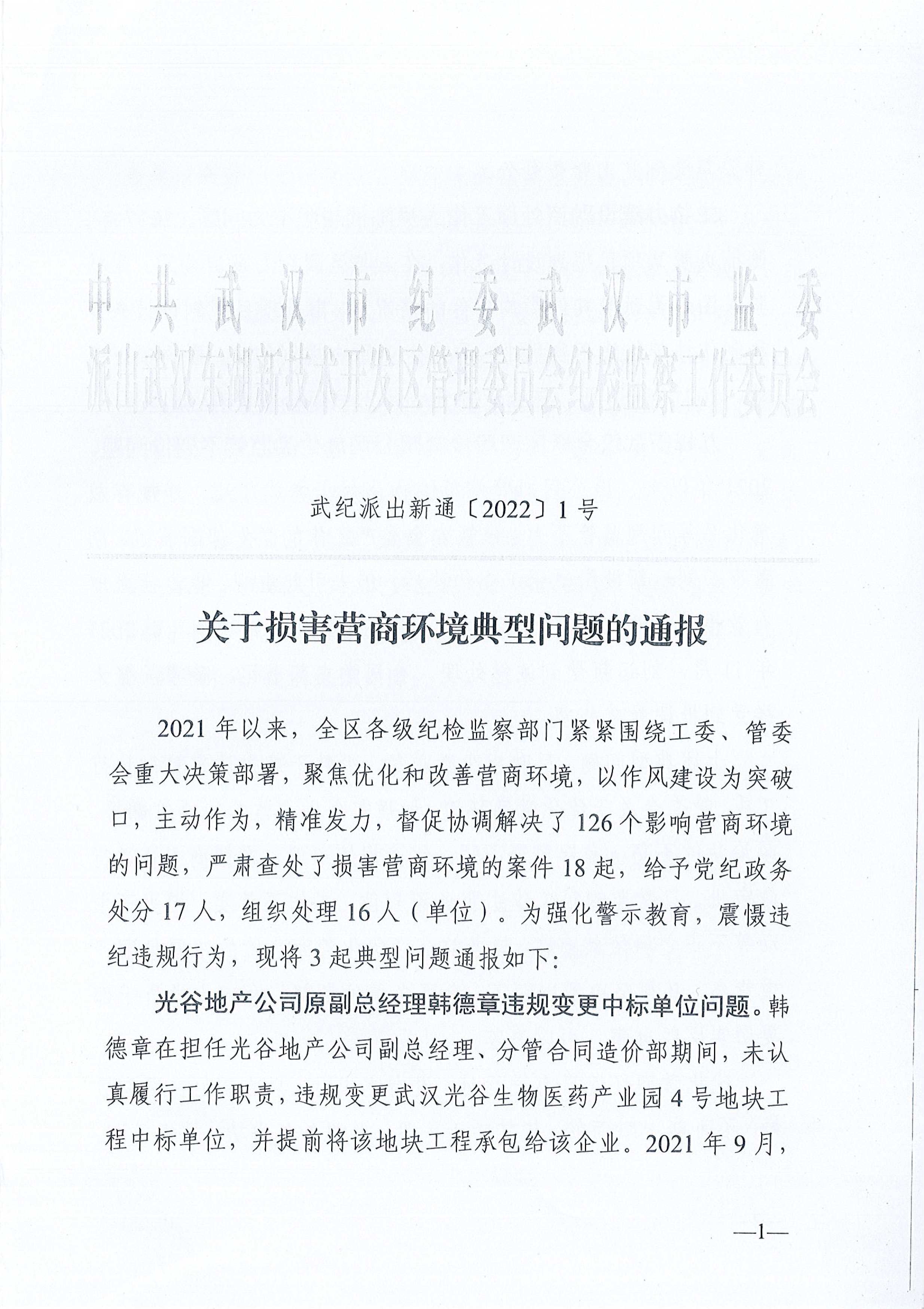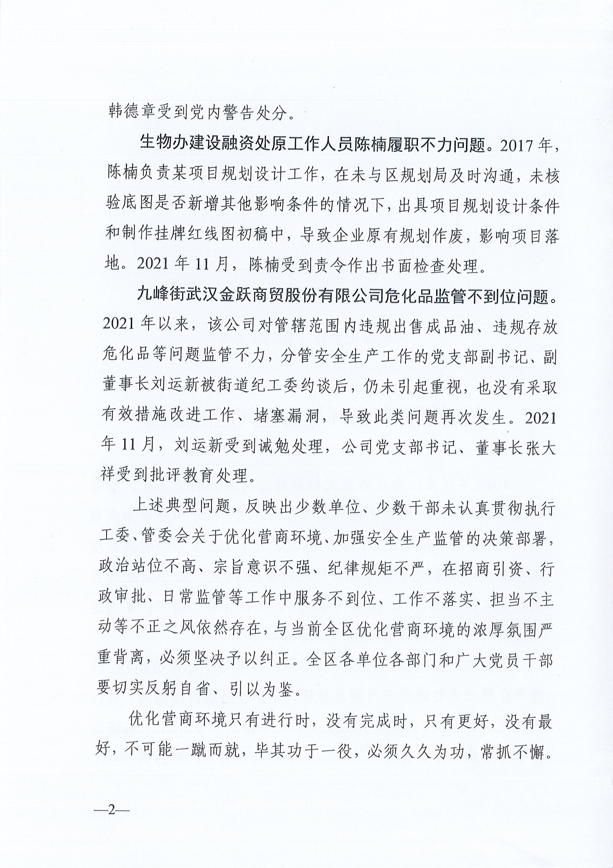 派出東湖高新區(qū)紀檢監(jiān)察工委關于損害營商環(huán)境典型問題的通報