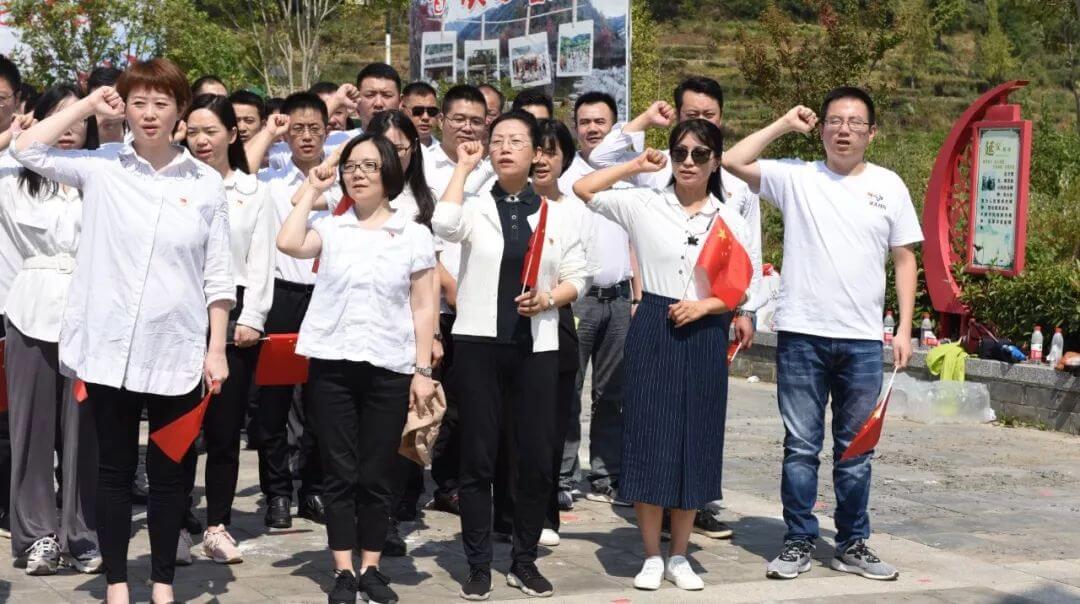 姚家山位于武漢市黃陂區(qū)蔡店街,群山起伏,地勢險(xiǎn)要,是抗日戰(zhàn)爭的紅色堡壘,這里曾留下了李先念、陳少敏等老一輩無產(chǎn)階級(jí)革命家、革命先驅(qū)光輝的足跡。在抗戰(zhàn)門樓廣場,懷著對革命先輩的崇敬之情,集團(tuán)公司舉行了莊嚴(yán)隆重的升旗儀式,全體黨員干部職工奏唱國歌,并在人民英雄紀(jì)念堂內(nèi)重溫入黨誓詞。